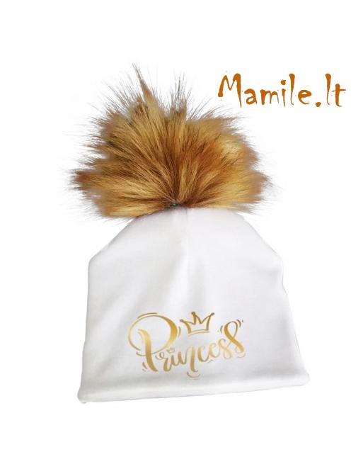 Baltos kepurės su nusegamais pomponais "PRINCESS".