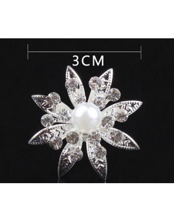 Pagaminta iš lengvo sidabro spalvos bižuterinio metalo, kristalo ir perlų karoliukų.