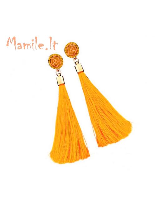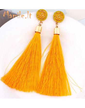 Ilgi, puošnūs, ryškūs, žvilgantys auskarai su ilgais kutais.