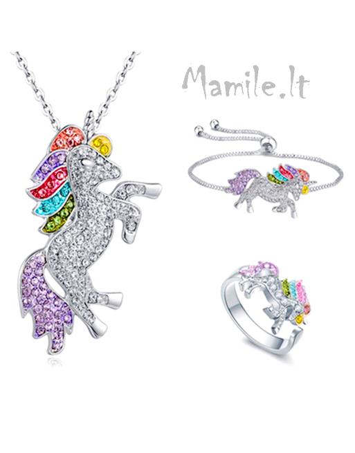 Pasakiškai žėrintys, nepakartojamai mieli ir žavūs 4 dalių papuošalų rinkinukai mergaitėms: žiedukas, pakabukas, grandinėlė ir apyrankė.