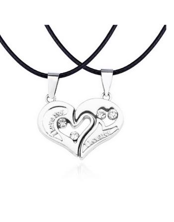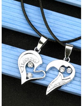 Lengvi širdies formos pakabukai, padalinti į dvi dalis – puošti žėručiais ir užrašais „I Love You“.