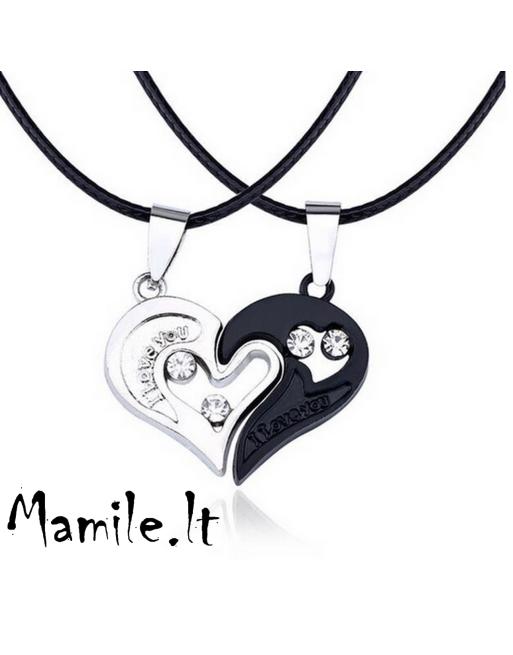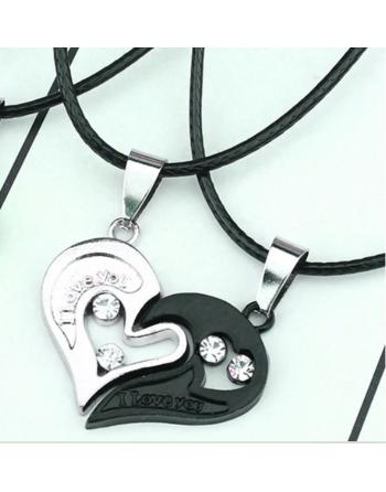 Lengvi širdies formos pakabukai, padalinti į dvi dalis – puošti žėručiais ir užrašais „I Love You“.