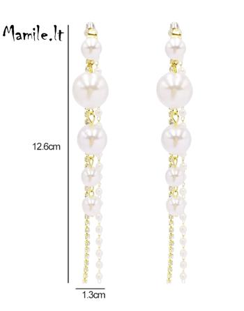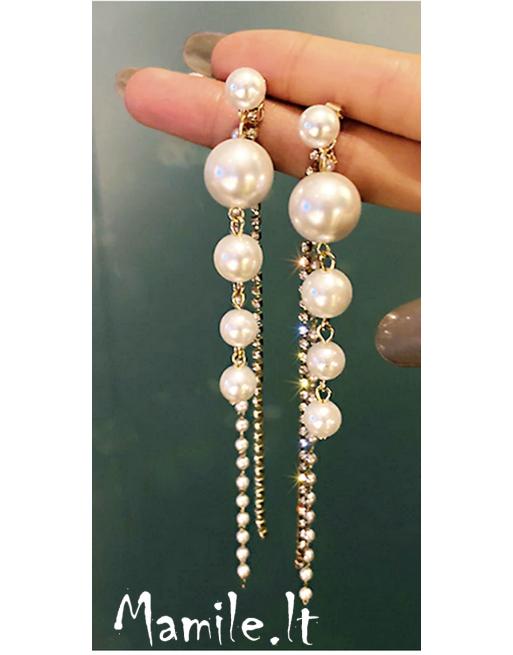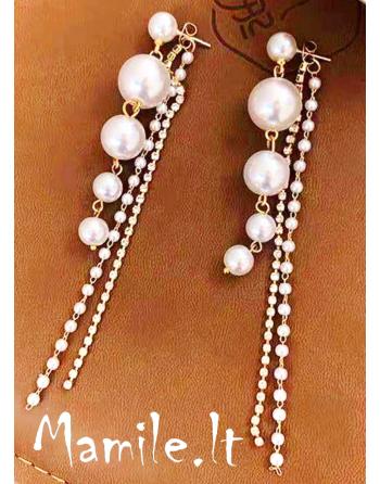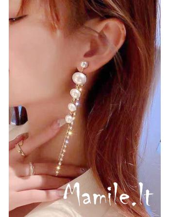 Puošnūs, stilingai elegantiški dirbtinių perlo karoliukų ir žaižaruojančių žėručių auskarai-du viename.
