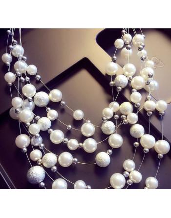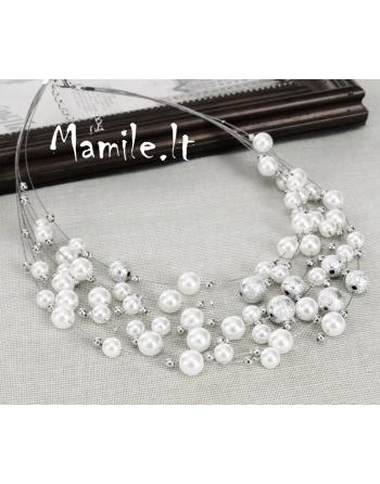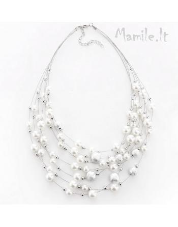 Pagaminta iš sidabro spalvos bižuterinio metalo, sidabro ir perlų spalvos karoliukų.