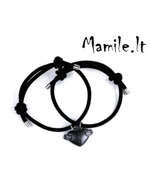 Žavios, stilingos, dviejų virvių apyrankės su magnetiniais širdies formos pakabukais poroms.