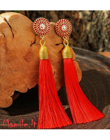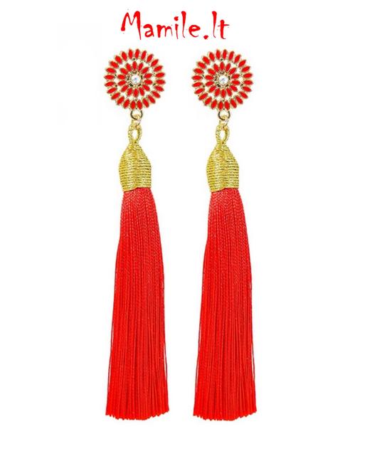 Ilgi, puošnūs, ryškūs, žvilgantys auskarai su ilgais kutais.