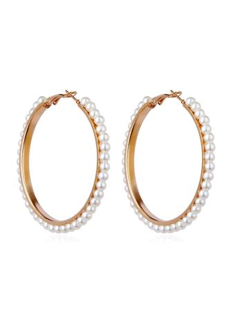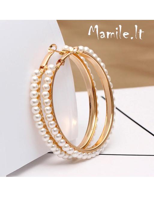 Puošnūs, stilingai elegantiški dirbtinių perlų auskarai.