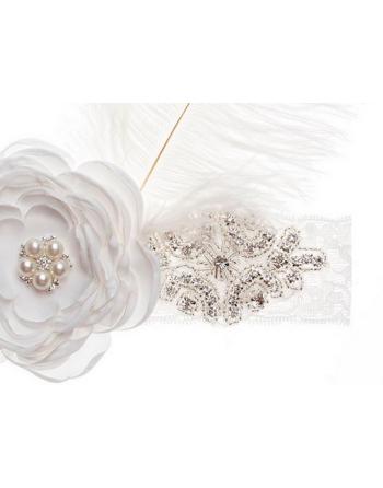 Galvajuostės pagamintos iš puošnios, tamprios elastinės juostelės ir atlasinės gėlytės, perliukų karoliukų, Žaviai žaižaruojančių žėručių ir elegantiškos plunksnos.