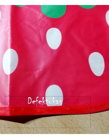 DEFEKTUKAS: siuvimo defektas – apatinėje seilinuko dalyje yra išlindę keli siūliukai. (žr. foto).