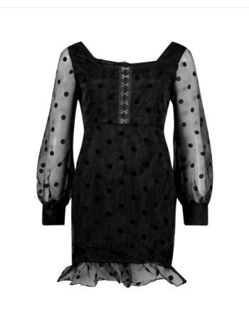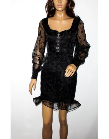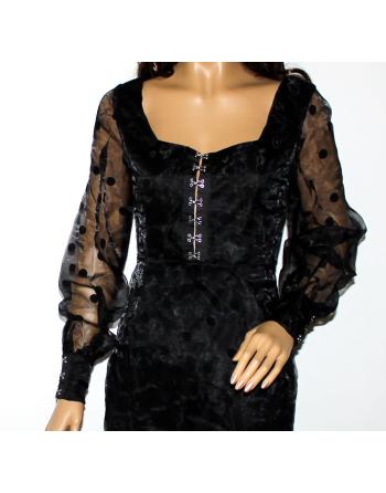 Viršutinė dalis: juodos spalvos organza puošta aksomo rutuliukais.