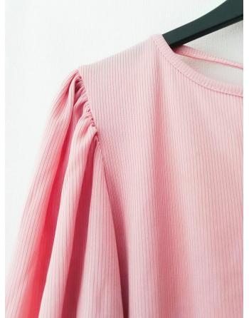 Žavingos suknelės atvira nugara, pūstomis rankovėmis.