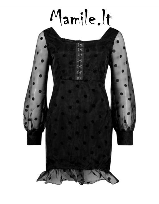 Viršutinė dalis: juodos spalvos organza puošta aksomo rutuliukais.