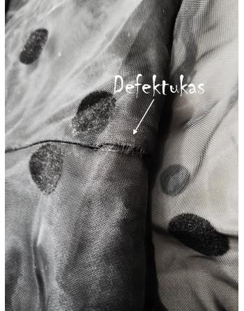 DEFEKTAS: ties juosmeniu, šone šiek tiek atsikabinusi organza nuo pamušalo siūlės (žr. foto)